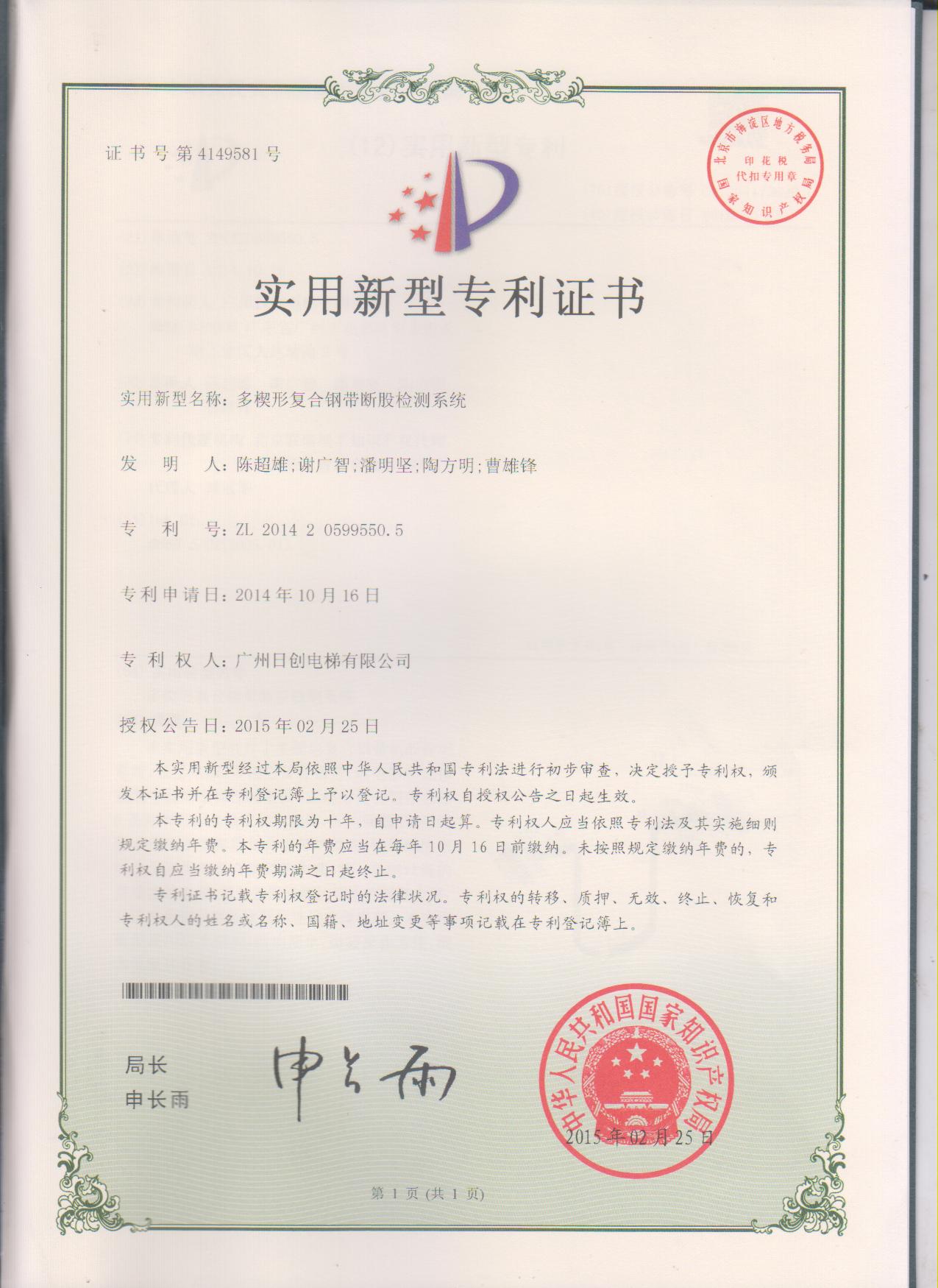 近期,公司榮獲“多楔形復(fù)合鋼帶斷股檢測系統(tǒng)、多楔形復(fù)合鋼帶曳引電梯系統(tǒng)”等多項關(guān)鍵技術(shù)專利,為公司在研發(fā)REMOST鋼帶曳引客梯技術(shù)奠定堅實基礎(chǔ),為今后新產(chǎn)品推出做好充分的技術(shù)儲備。